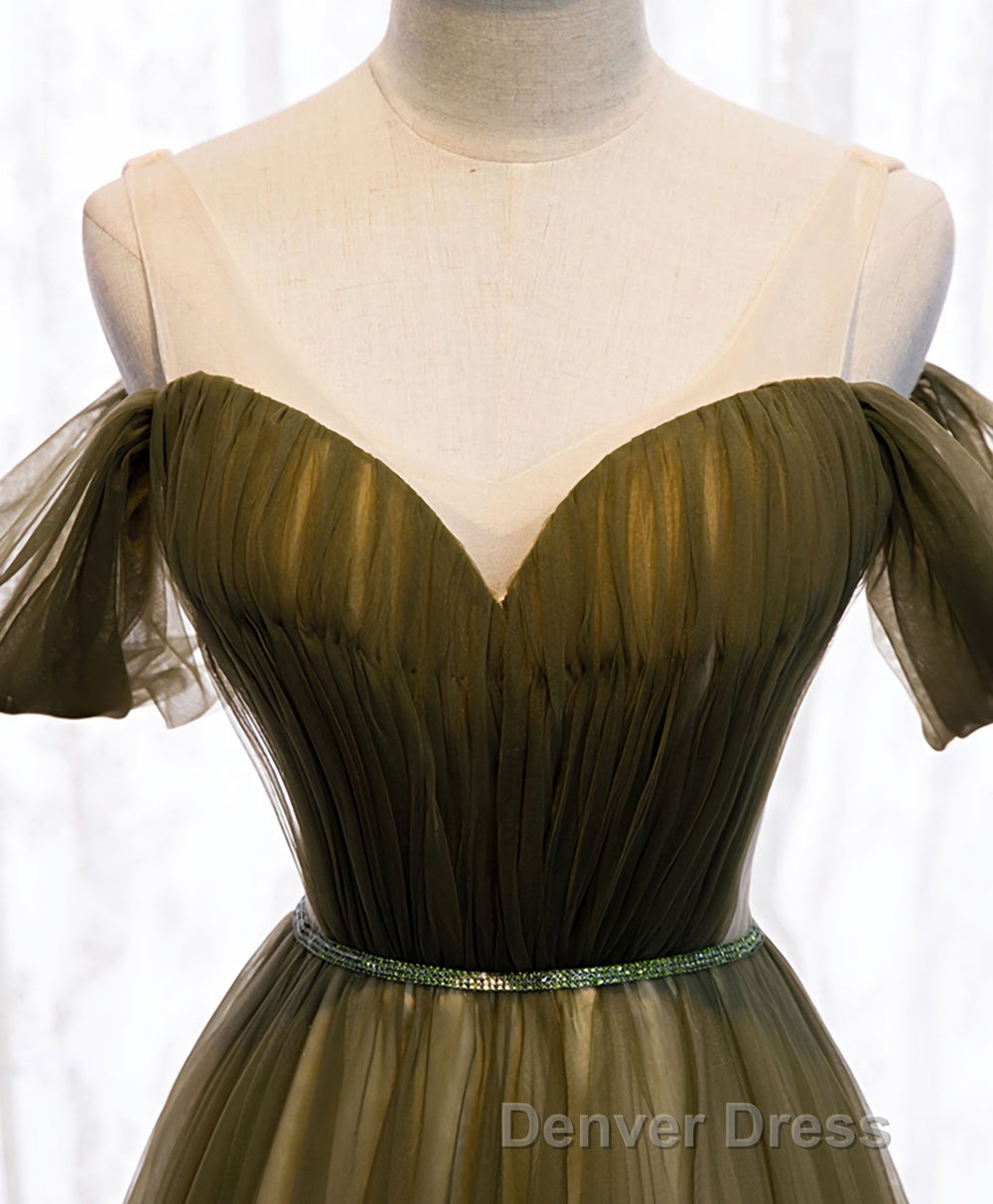 Simple Sweetheart Tulle Off Shoulder Long Prom Dresses, Tulle Formal Dresses