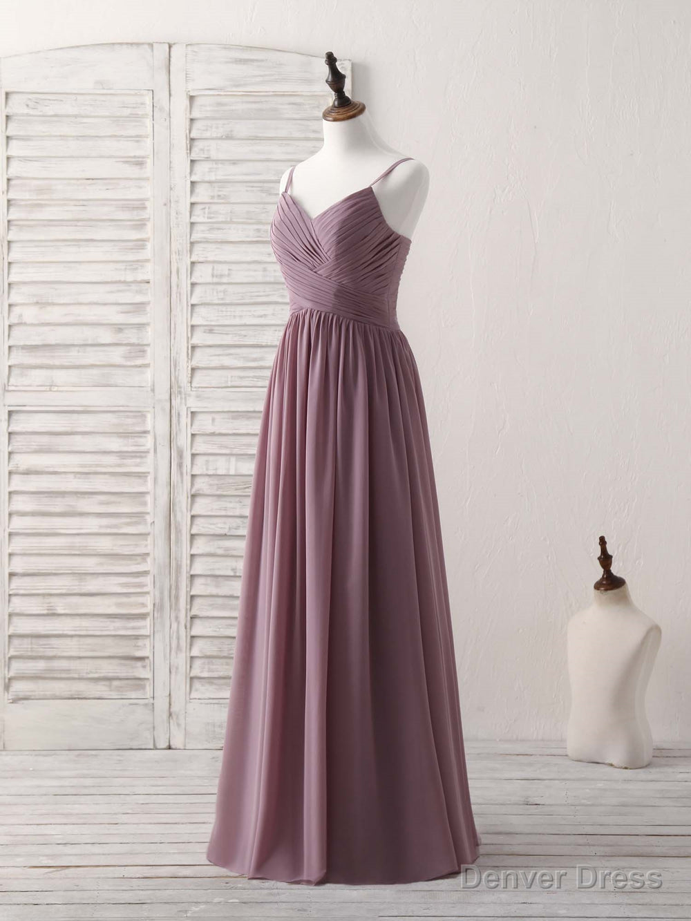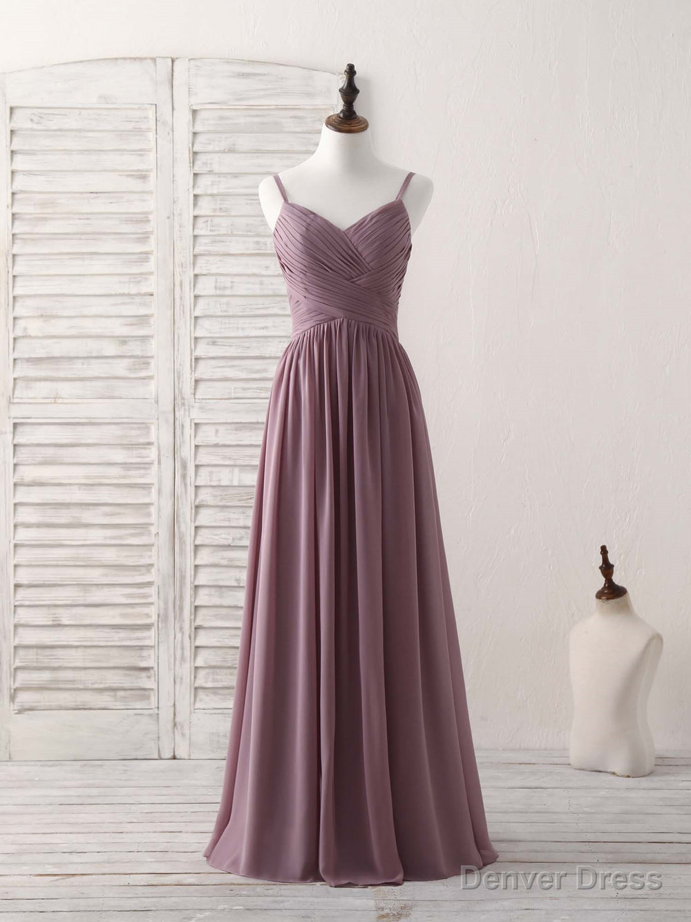 Simple V Neck Chiffon Long Prom Dress Dark Pink Bridesmaid Dress