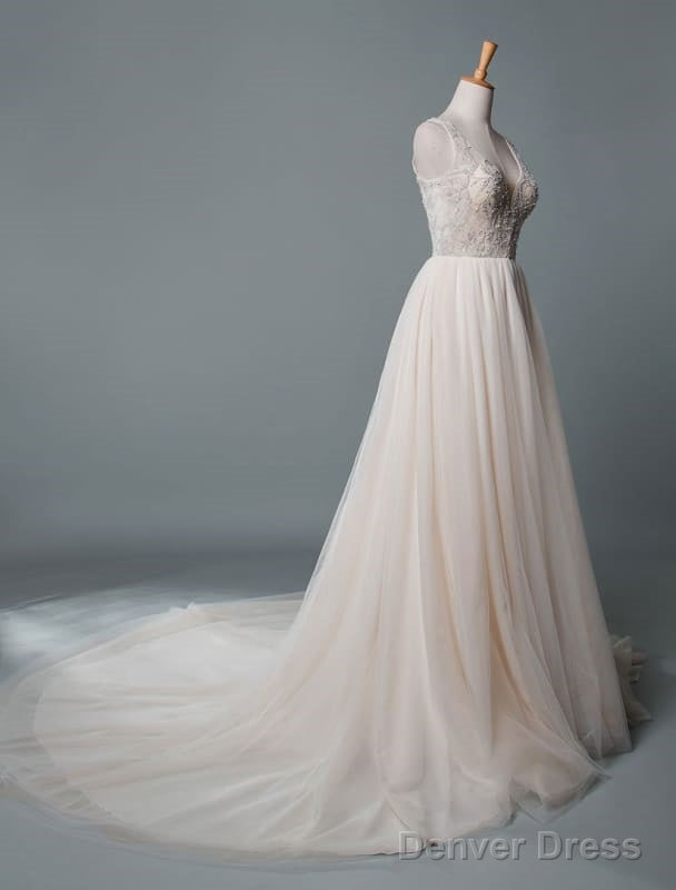Simple Wedding Dress A Line V Neck Sleeveless Applique Beaded Floor Length Bridal Dresses