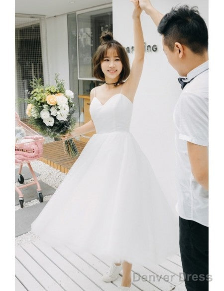 Spaghetti Straps Tea Length 80S Vintage Ballet Wedding Dress