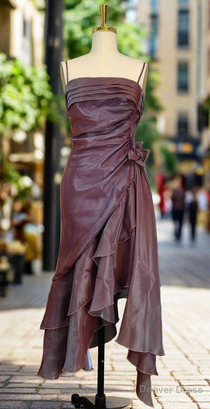 Sparkly Vintage Spaghetti Straps Purple Prom Dresses Ruffle Sleeveless Mermaid Ruffled Fromal Dresses