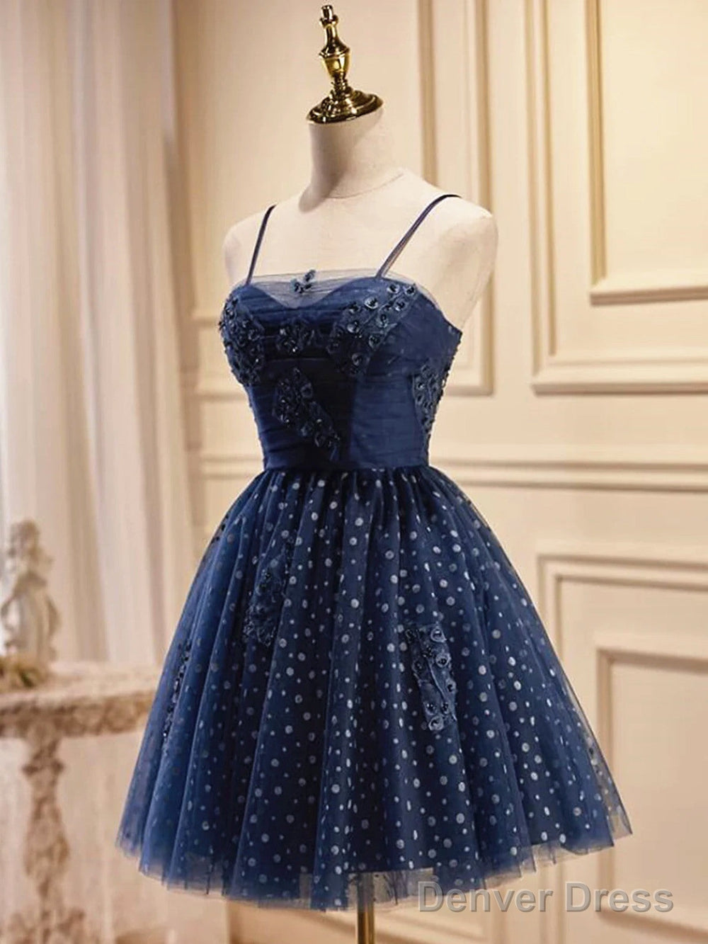 Strapless Short Navy Blue Prom Dresses, Short Dark Blue Formal Homecoming Dresses
