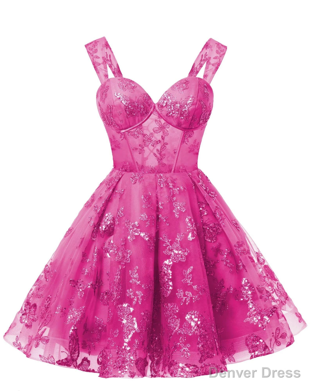 Teens Sparkly Tulle Fuchsia Homecoming Dresses Spaghetti Straps Short Cocktail Party Prom Dress