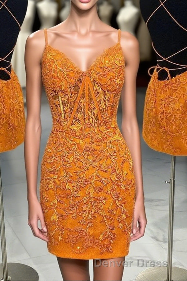 Tie Back Blue Appliqued Bodycon Homecoming Dresses