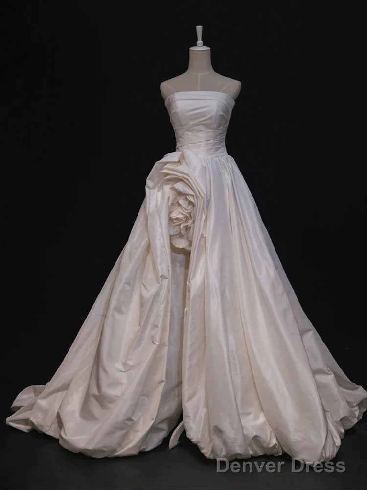 Timeless High Low Strapless Satin Ivory Wedding Dresses Brides Dress