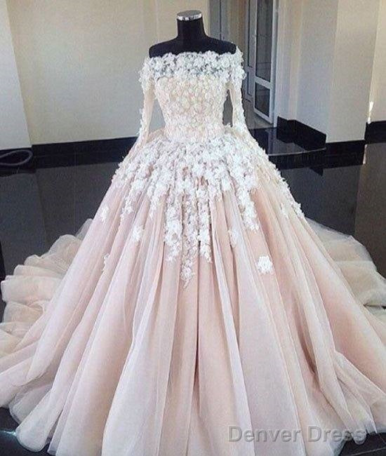 Unique Champagne Lace Tulle Long Wedding Dress, Bridal Dress