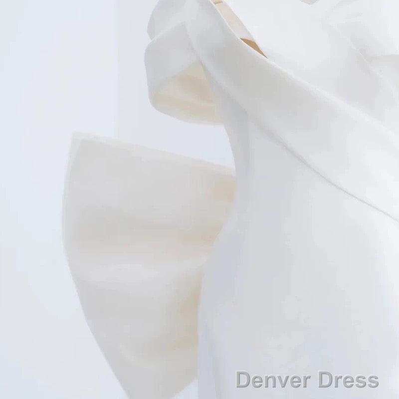 Unique Mermaid Off The Shoulder Long White Satin Wedding Dresses