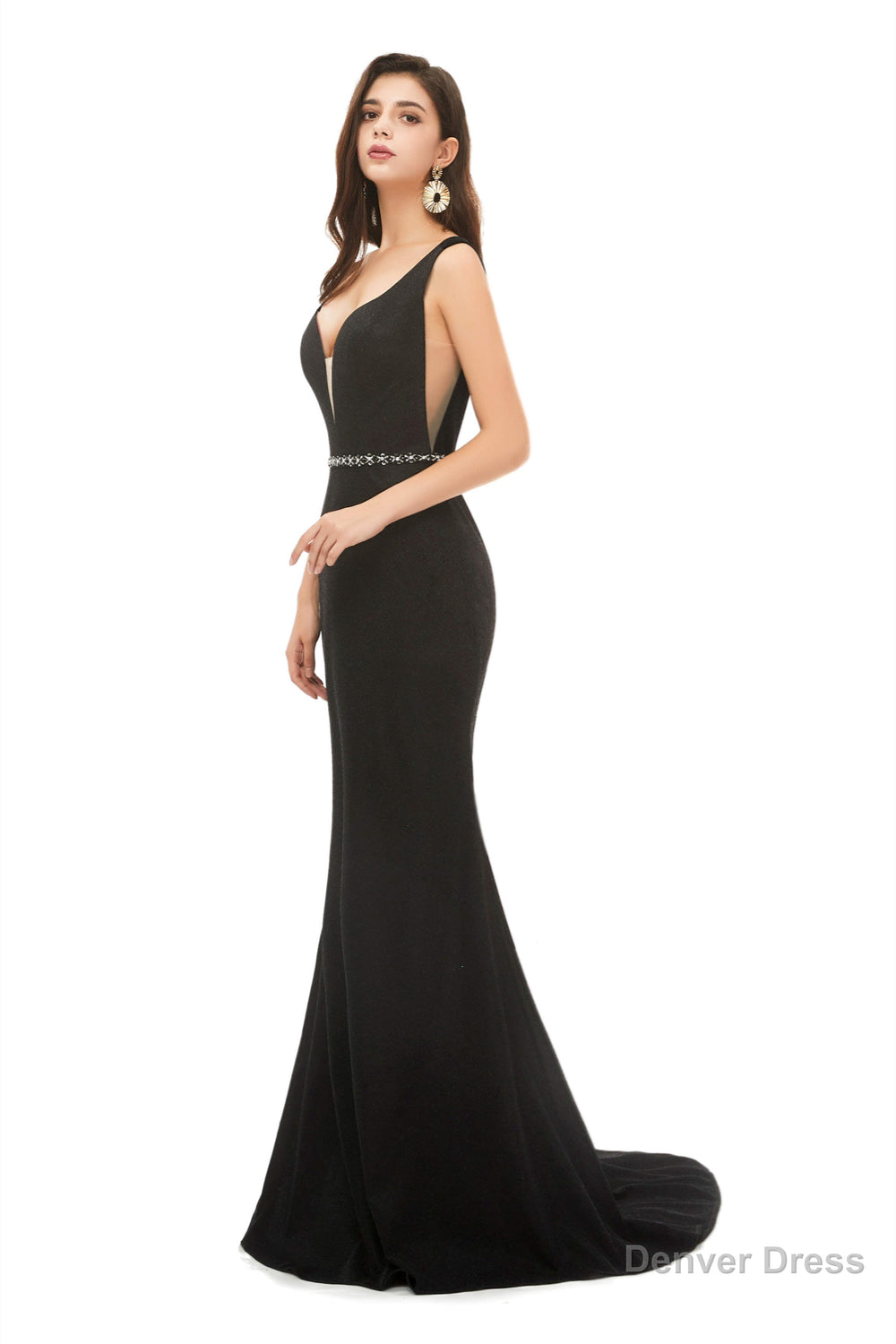V Back Mermaid V Neck Beaded Waist Prom Dresses