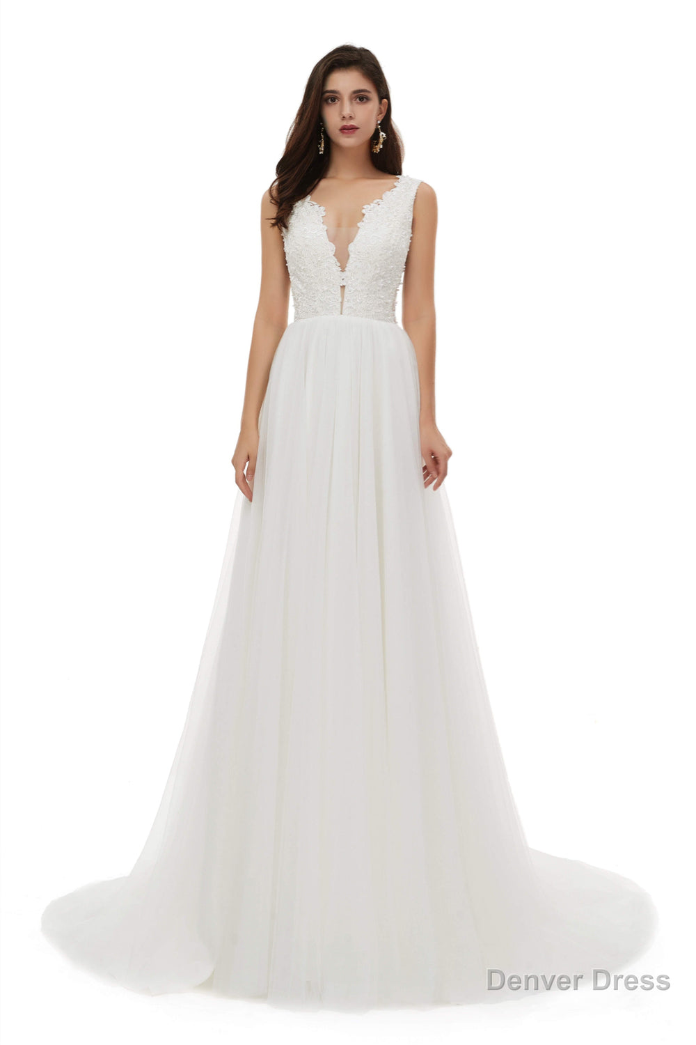 V-Neck Beaded Lace Beaded Applique Tulle Wedding Dresses