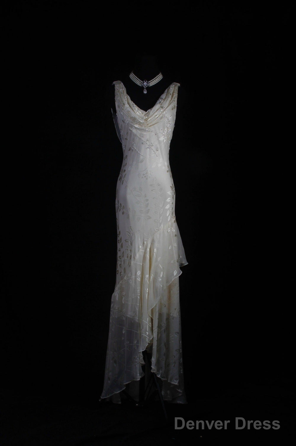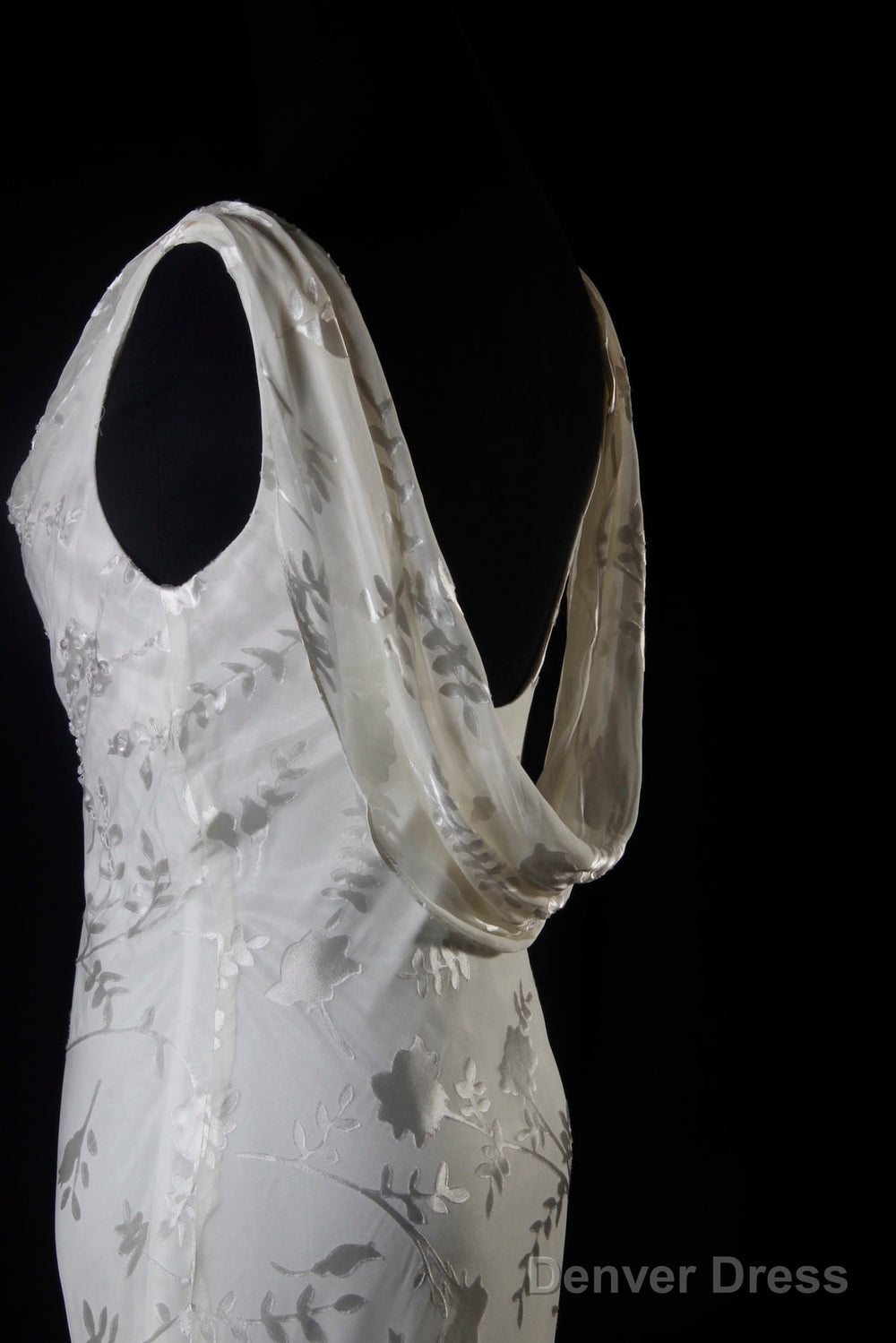 V-Neck Chiffon Beaded Long Prom Dress Simple Mermaid Wedding Dress