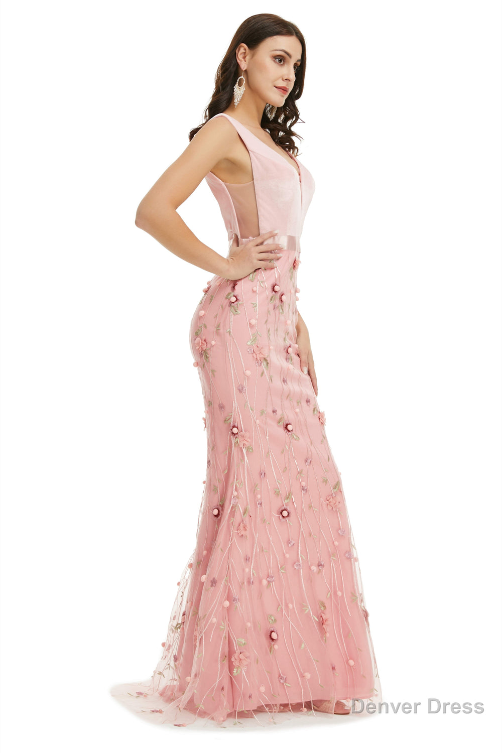 Velvet Mermaid Prom Dresses Lace 3D Flowers