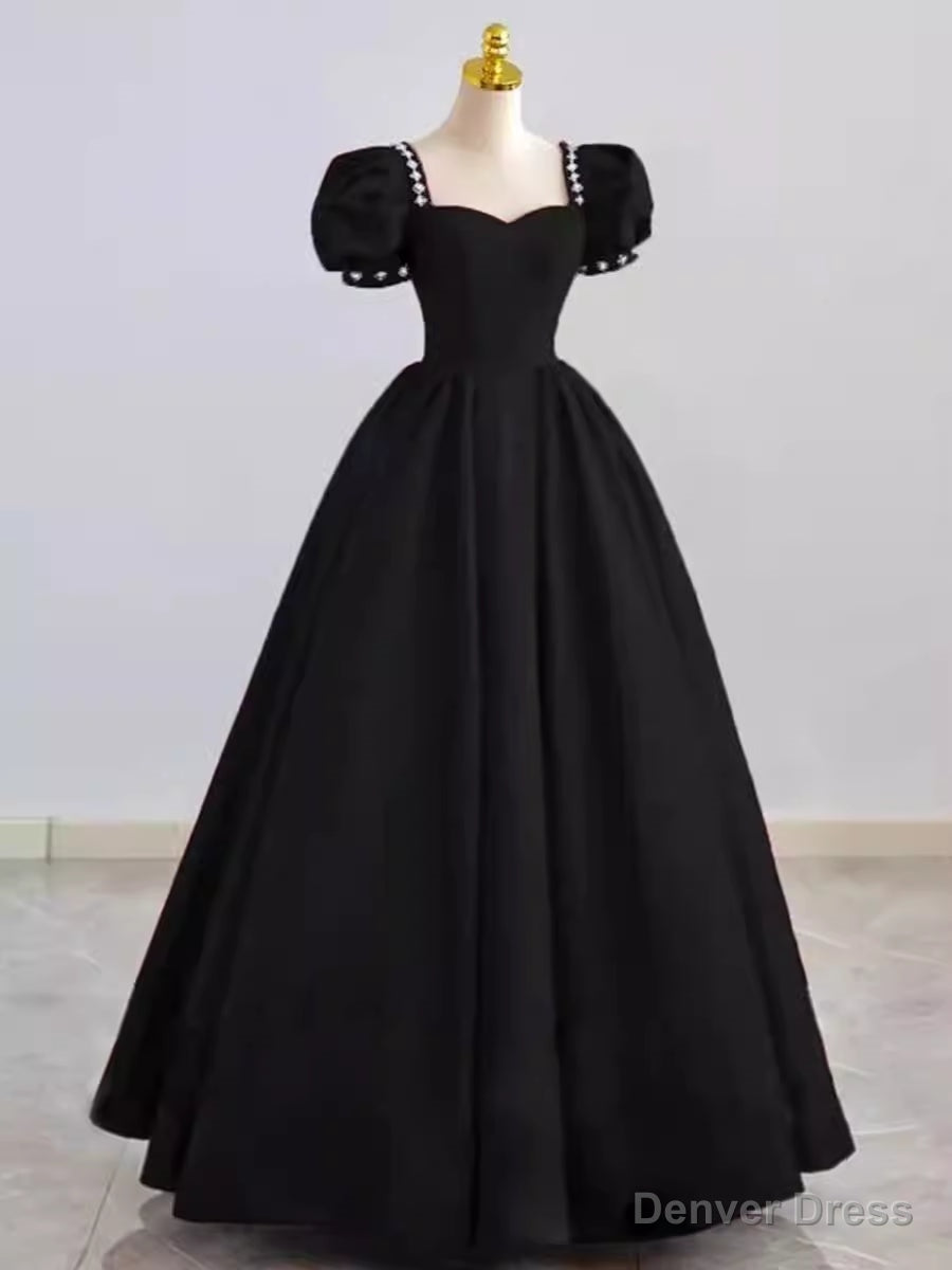 Vintage Ball Gown Satin Black Long Prom Dress Wedding Party Dresses
