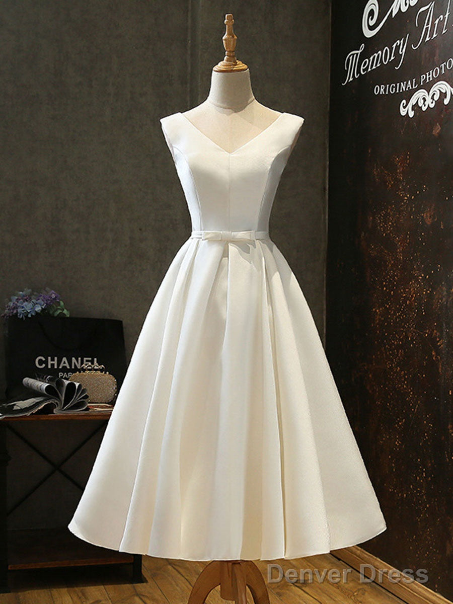 White Round Neck Satin Short Prom Dress White Homecoming Dress