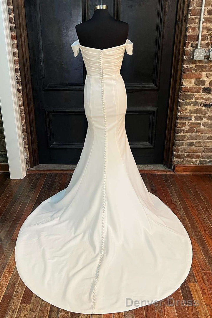 White Satin Off-The-Shoulder Mermaid Long Wedding Dress Pure Color