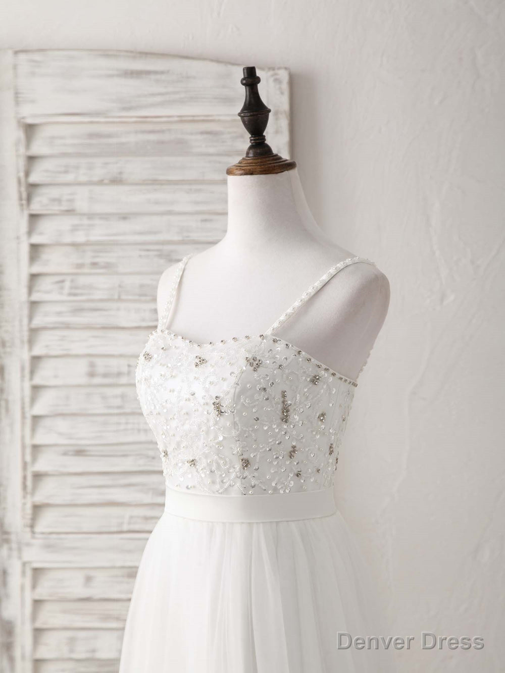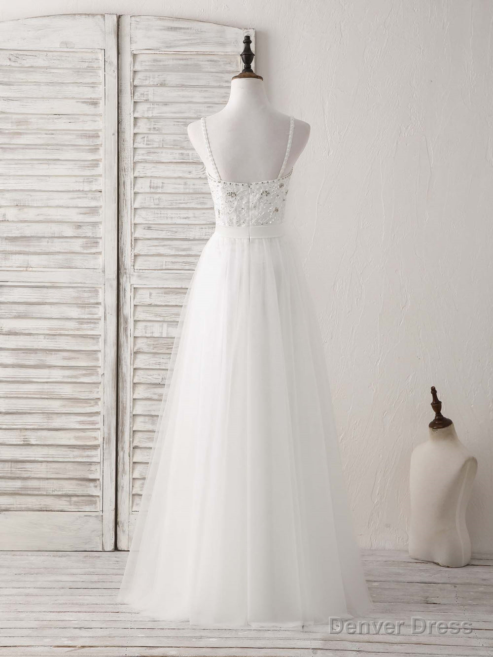White Sweetheart Neck Tulle Beads Long Prom Dress White Evening Dress