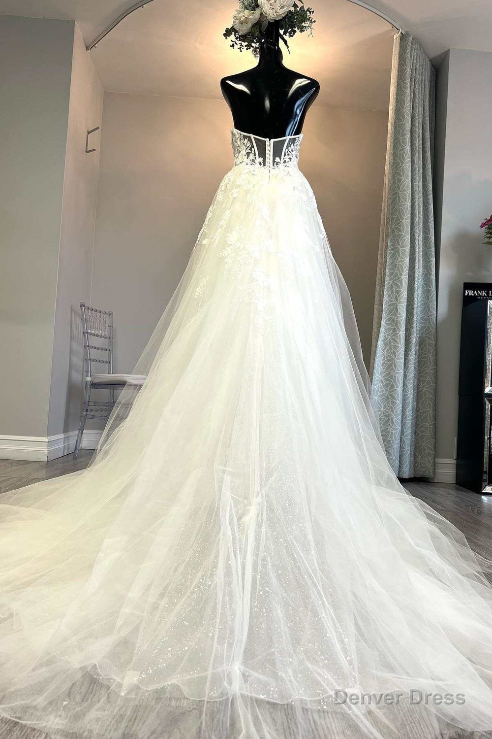 White Tulle Floral Lace Strapless A-Line Wedding Dress